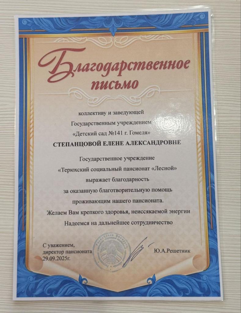 В нашей стране бережно хранят добрые традиции. Одна из них – относительно новая, но уже такая важная – благотворительная акция «Твори добро», направленная на поддержку пожилых людей. Сегодня эстафета добра дошла до ГУ «Терюхский социальный пансионат «Лесной» для престарелых и инвалидов. Коллектив педагогов ГУО «Детский сад №141 г. Гомеля» посетили пансионат, чтобы поздравить его жителей и подарить им радость. Праздничный концерт и искреннее общение с постояльцами пансионата стали прекрасной возможностью поднять им настроение и увидеть их счастливые лица. Ведь именно доброта, милосердие и способность сопереживать формируют фундамент человеческого счастья.